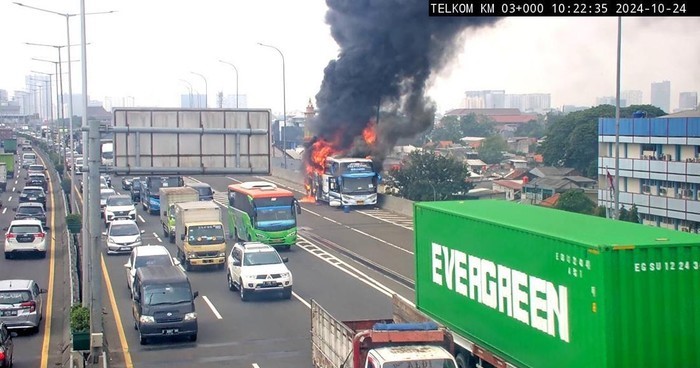 Bus Pariwisata yang Angkut Anak TK Terbakar di Tol Wiyoto Wiyono, Jakarta Timur