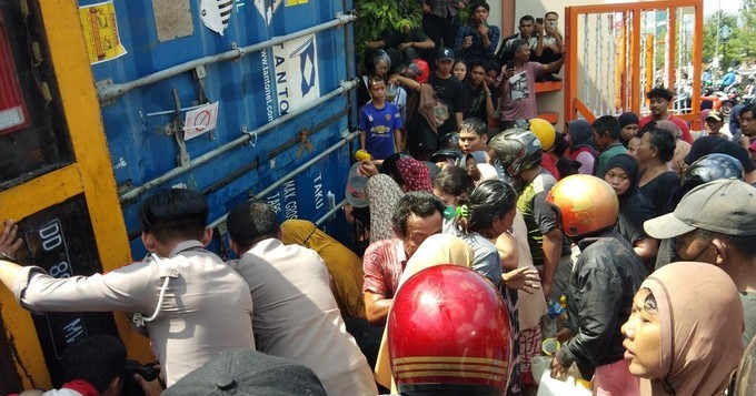 Truk Bermuatan Minyak Goreng Terbalik di Depan UNM Makassar, Warga Berebut Hingga Membawa Galon