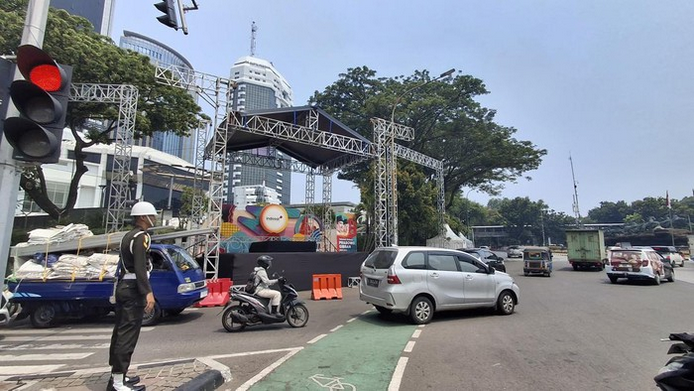Panggung Pesta Rakyat Pelantikan Prabowo-Gibran di Jakarta Mulai Didirikan