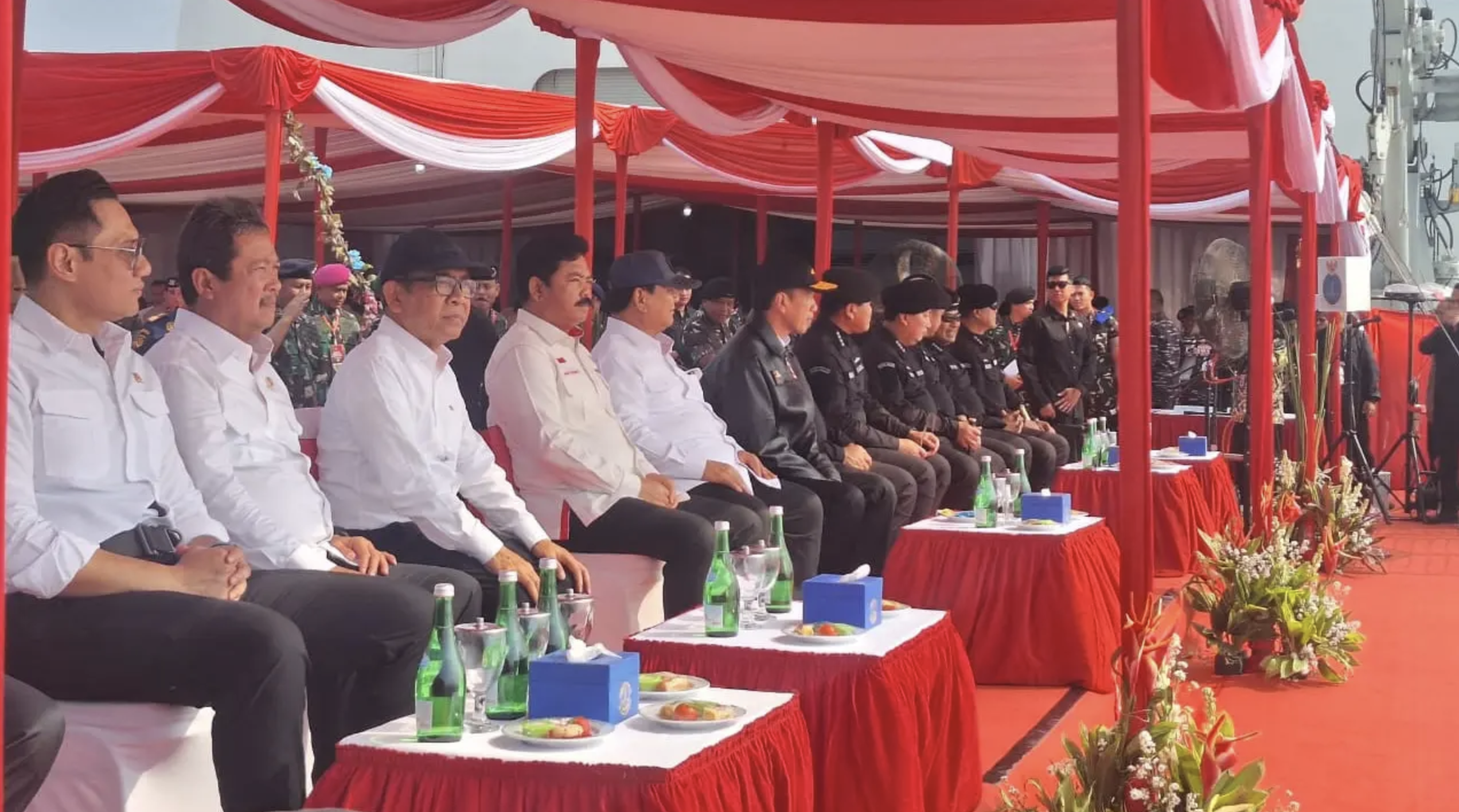 Jokowi-Prabowo Saksikan Sailing Pass Kapal Perang TNI AL di Atas KRI Radjiman